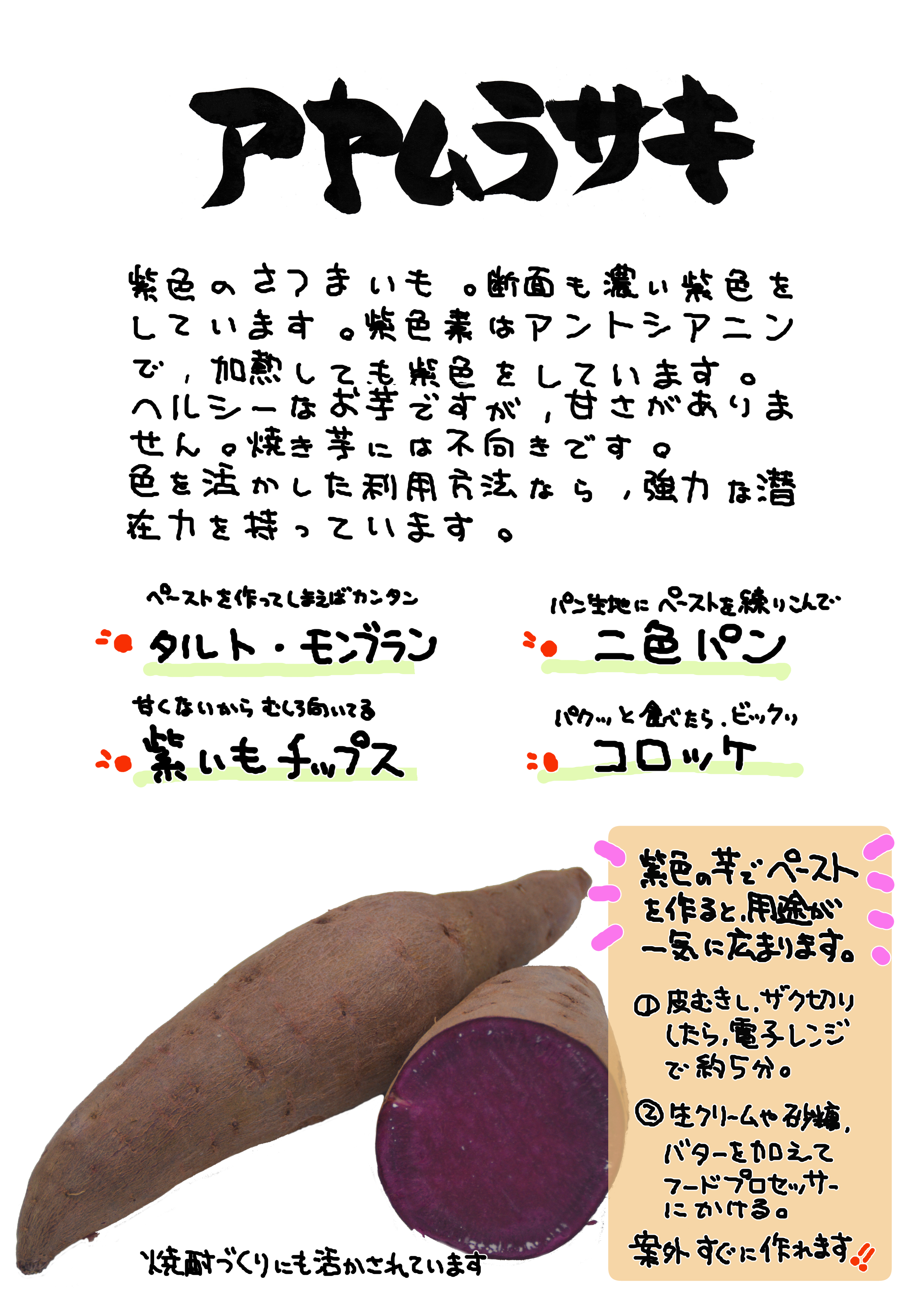 アヤムラサキ アヤムラ サキ 甘藷|心にチクっとささるワードで作る「ちくわPOP(ちくわぽっぷ)」|農産物直売所やスーパーの青果売り場の活性化に!農に特化したPOPが無料!!