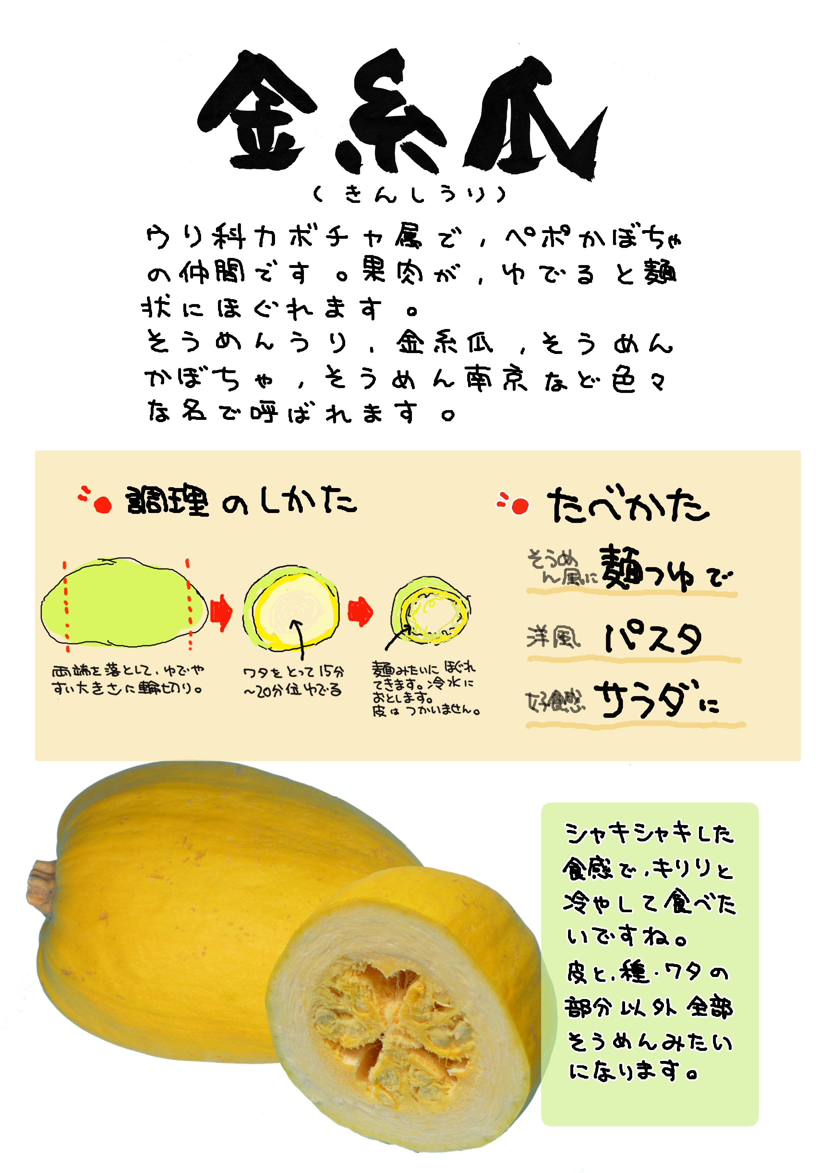金糸瓜 キンシウリ そうめんかぼちゃ そうめん南瓜 なます南蛮 錦糸うり 錦糸瓜 糸うり 糸かぼちゃ なますうり パスタ瓜