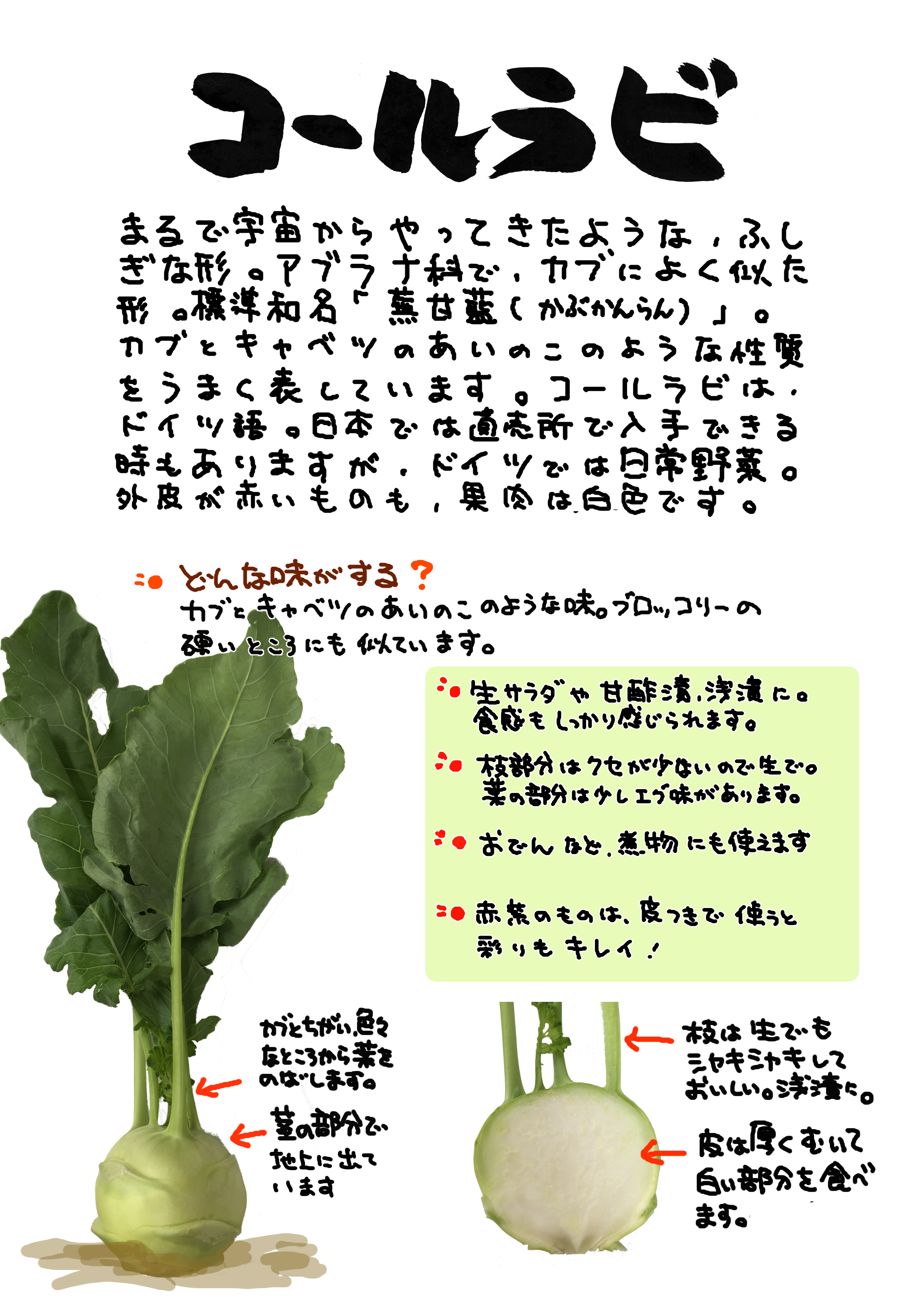 一般的なアブラナ科の性質を有しています。茎野菜といってよいです。しかし、不思議な形をしているものです。