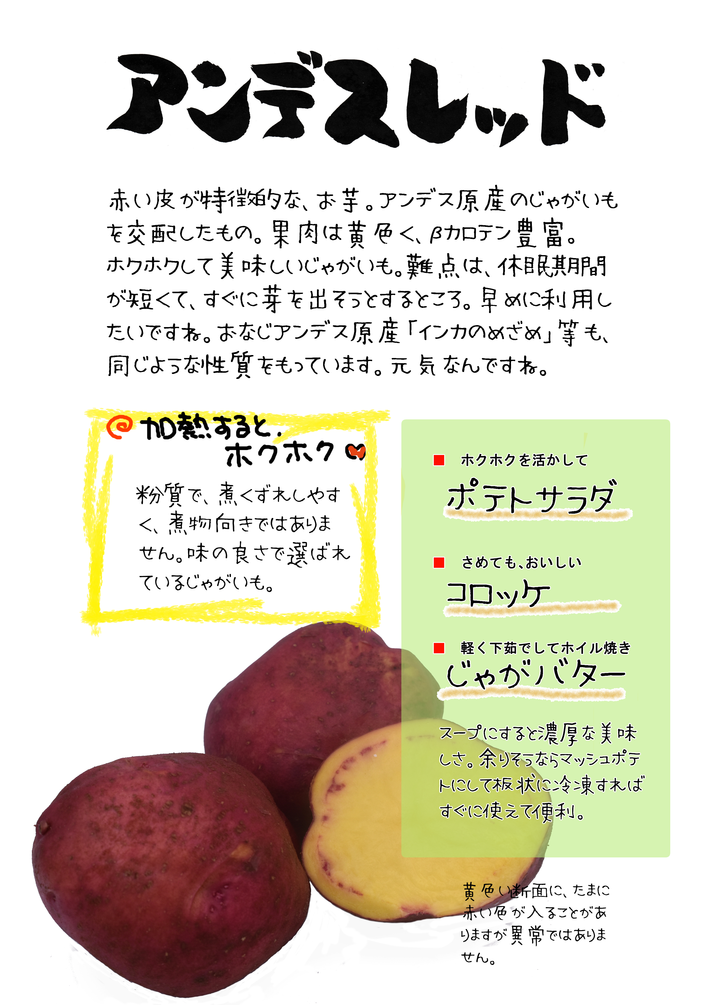 南米産ジャガイモと、北米産ジャガイモの交配ですが、日本で生まれた品種です。