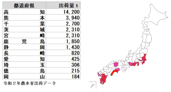 令和2年農水省ショウガ出荷量データを見てみます。