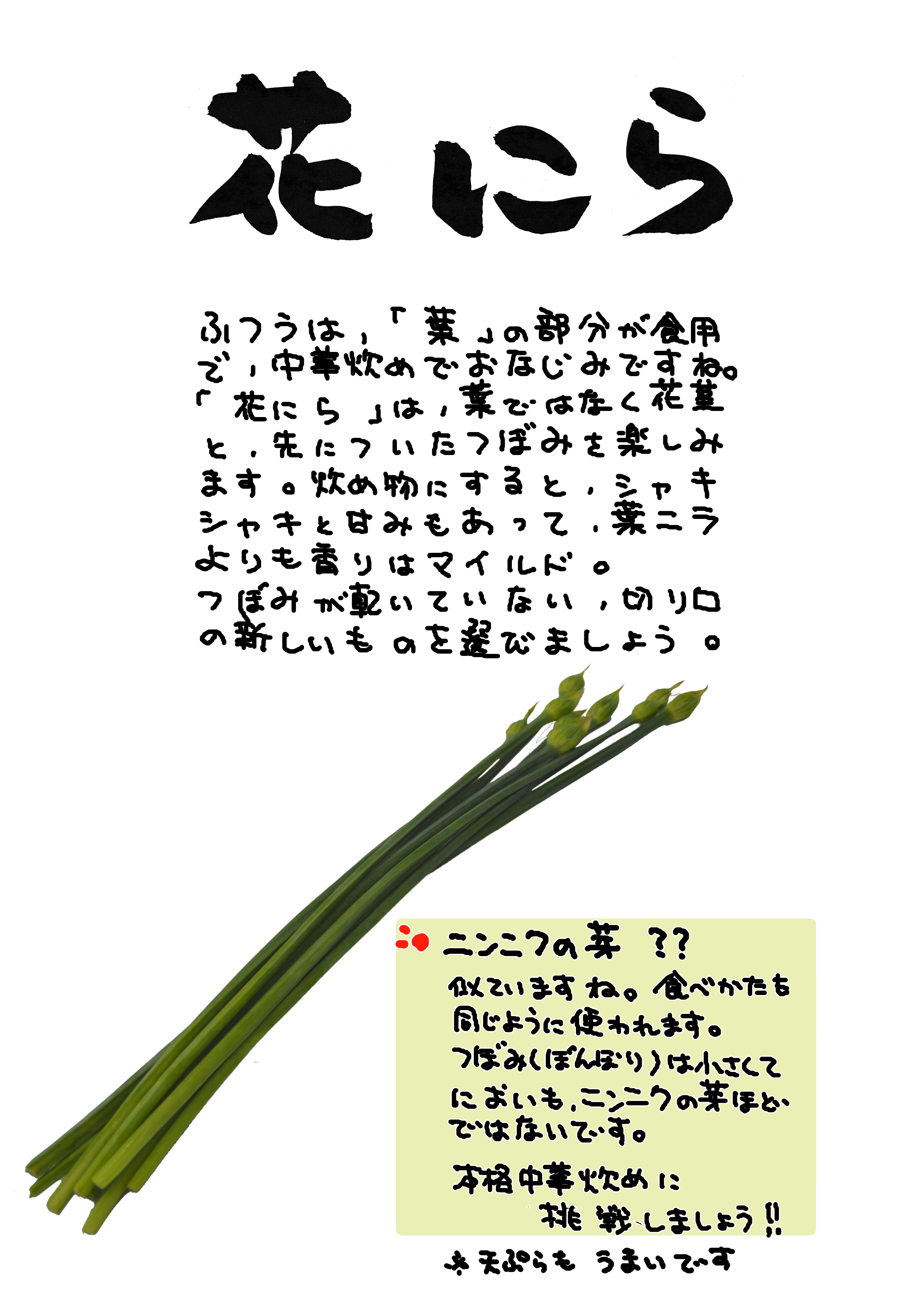 にんにくの芽にも似ています。どちらも「ネギ属」。炒め物にするとなかなかおいしい。