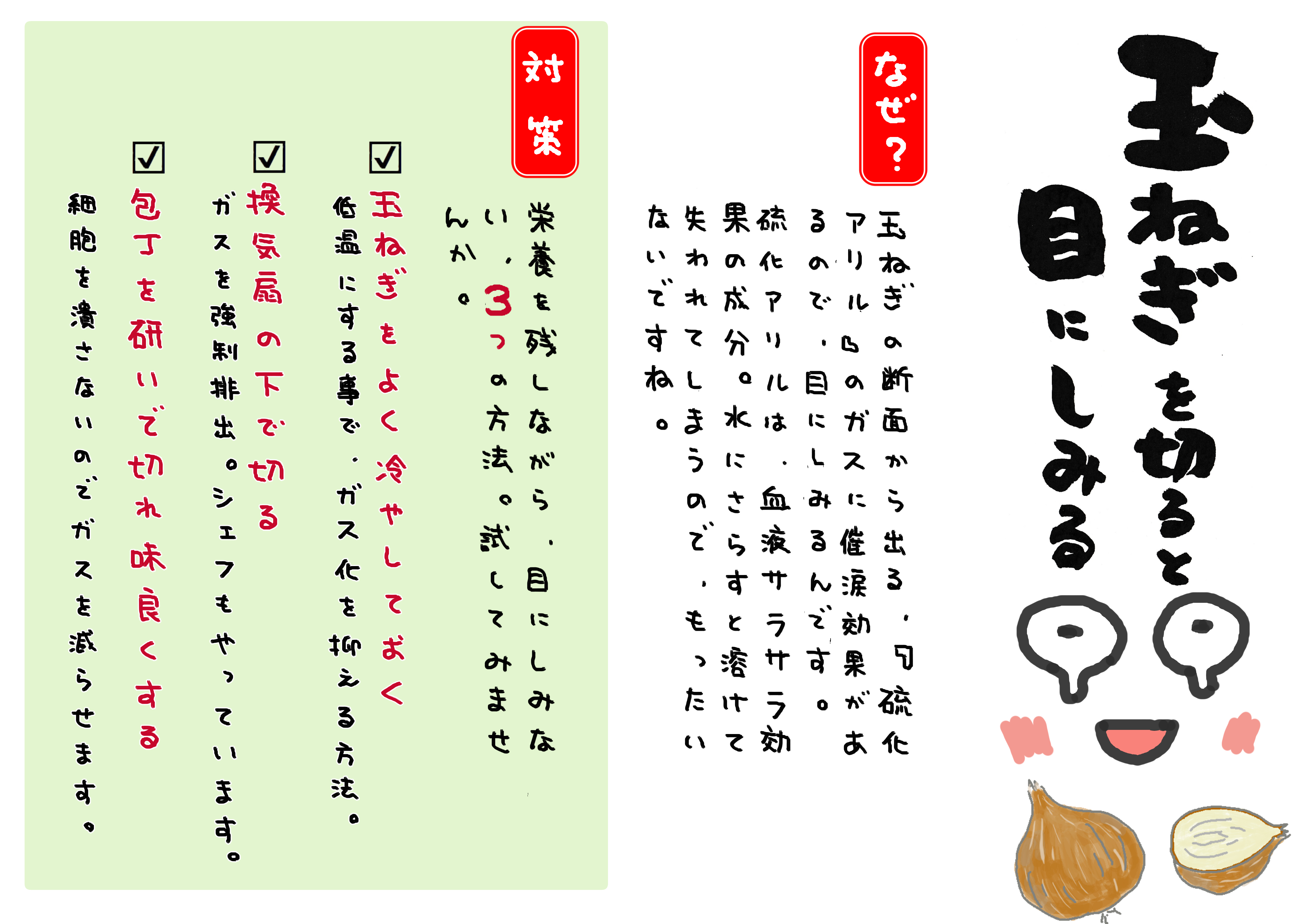 ことばを選ぶ作業や、どういう流れを一枚のシートにまとめるかに時間がかかってしまいました。制作を始めてからも3日ほどかかって、こんなもんです。改善版ができれば別にアップします。検索 玉ねぎ